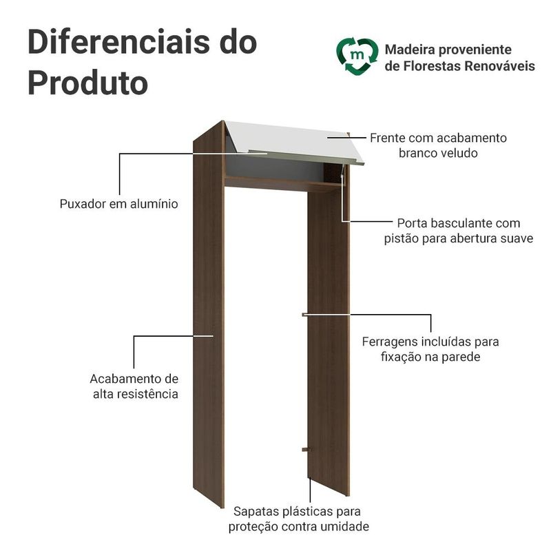 Casa e DecoraçãoMóveisArmário de CozinhaPorta-Geladeira 83 cm 1 Porta Basculante Rustic/Branco Veludo Lux Madesa