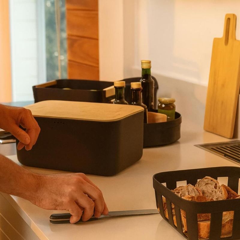 Porta Pães com Tampa Migalheira Bambu 33cm Cesto Preto Organizador Bolos Biscoitos Ou REF: 7899620668522