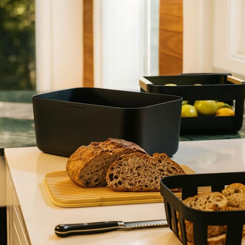 Casa e DecoraçãoUtilidades DomésticasAcessórios de CozinhaPorta Pães com Tampa Migalheira Bambu 33cm Cesto Preto Organizador Bolos Biscoitos Ou