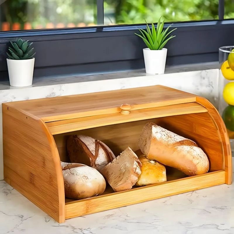 Casa e DecoraçãoUtilidades DomésticasAcessórios de CozinhaPorta Pães com Tampa Retrátil em Bambu N249026-0 - Quanhe