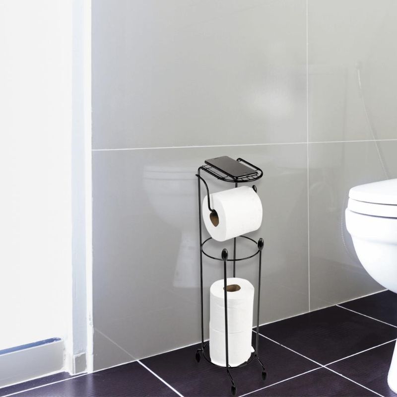 Porta Papel Higiênico com Suporte para Celular Papeleira para Banheiro de Chão Preta Utimil REF: 7896429166440