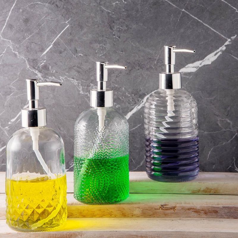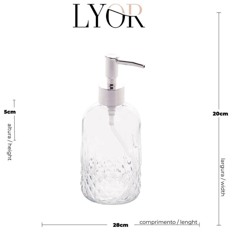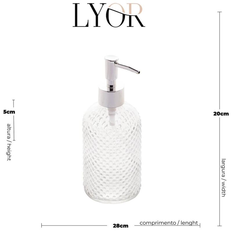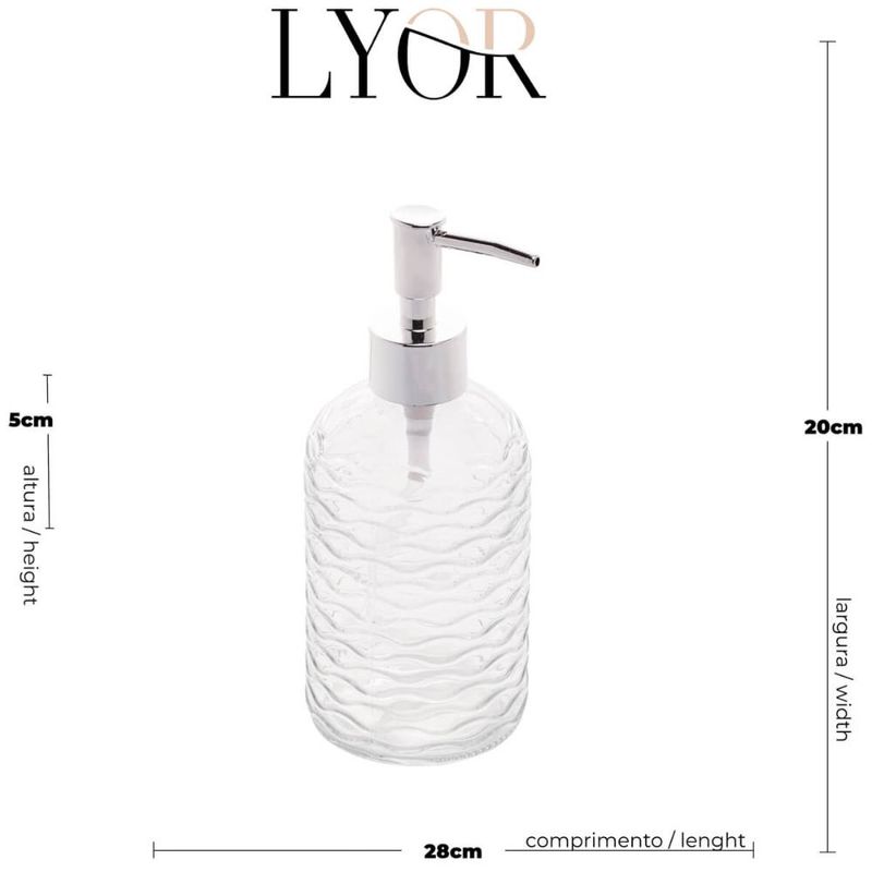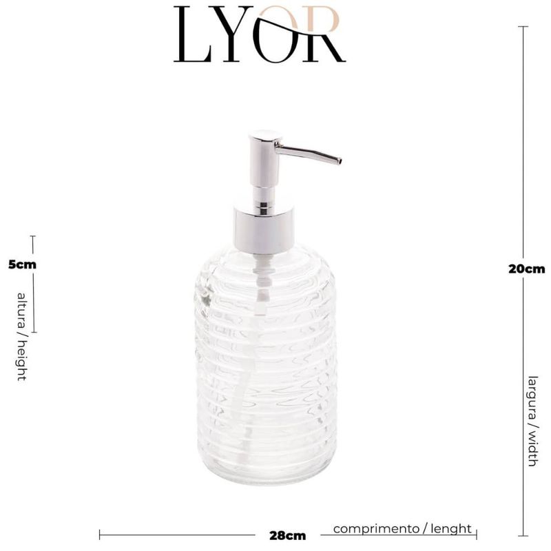 Porta Sabonete Líquido de Vidro Lyor 380ml para Bancada de Banheiro Suporte de Sabão Sortido REF: 7899768074223