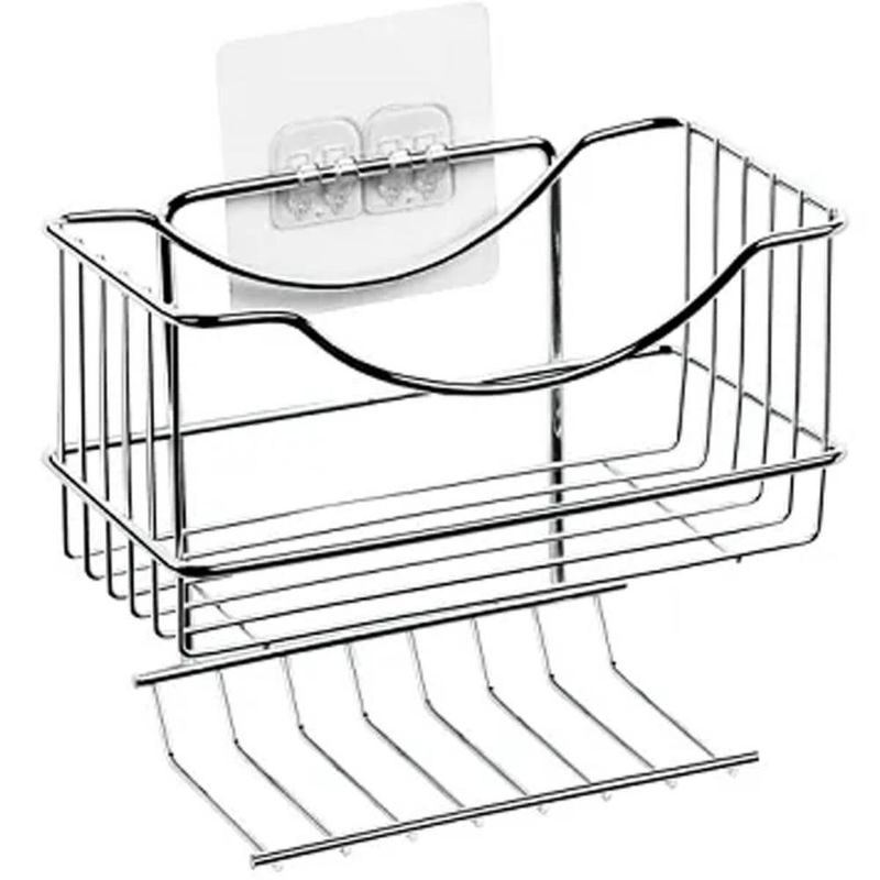 Porta Shampoo para Banheiro Cromado Suporte de Parede com Saboneteira Fixação por Adesivo Utimil REF: 7896429106262