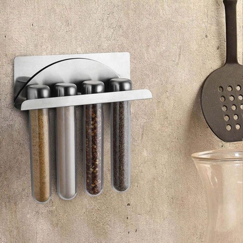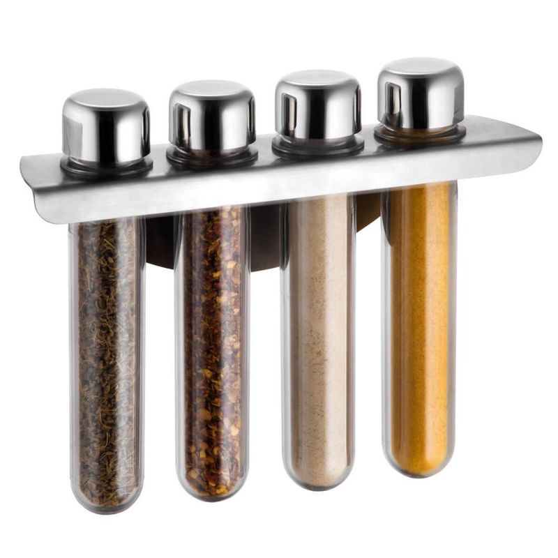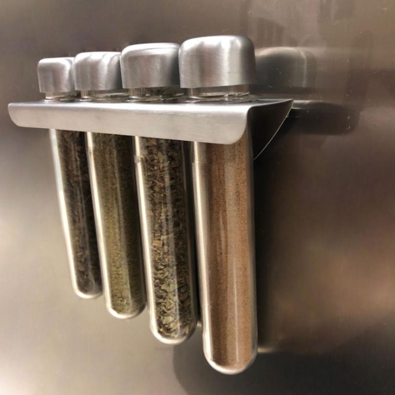 Casa e DecoraçãoUtilidades DomésticasAcessórios para ServirPorta Temperos Organizador Magnético Aço Inox 4 Potes Plásticos Forma