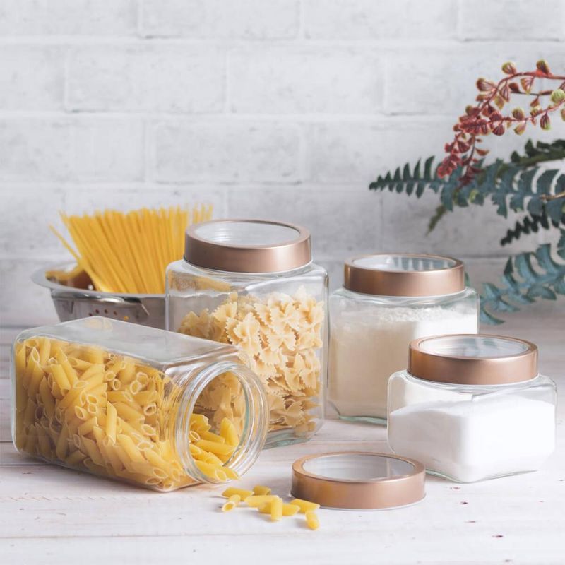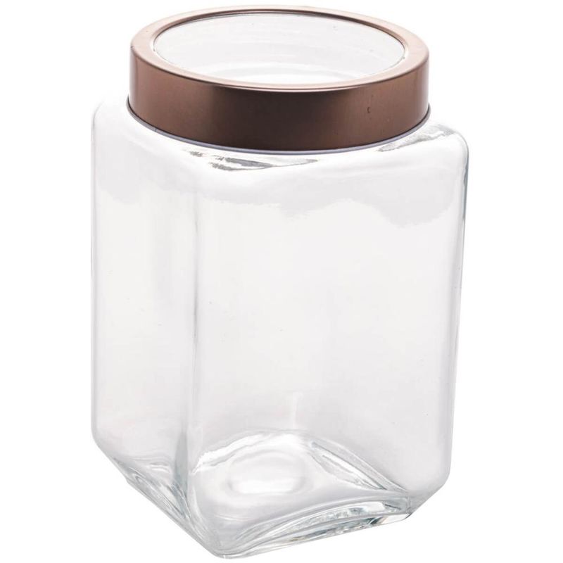 Pote de Vidro com Tampa Metal Lyor Rose Gold 1,7L Mantimentos Gastro Retangular REF: 7899768075237