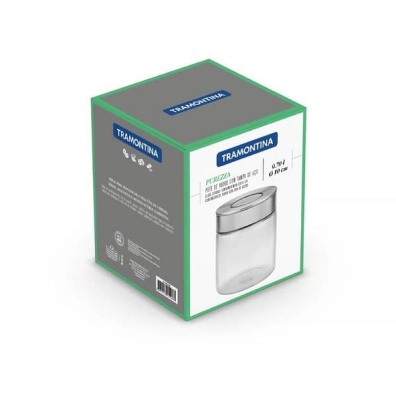 Pote de Vidro Tramontina Purezza com Tampa de Aço Inox 10cm 0,7 Litros REF: 7891116155660
