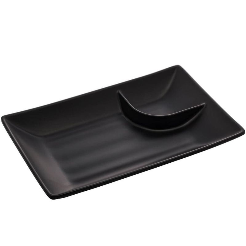 Casa e DecoraçãoUtilidades DomésticasAcessórios para ServirPrato para Sushi Lyor Travessa Retangular Pequena Petisqueira com Molheira Melamina Tóquio Preto