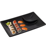 Prato para Sushi Lyor Travessa Retangular Pequena Petisqueira com Molheira Melamina Tóquio Preto REF: 7899768028448