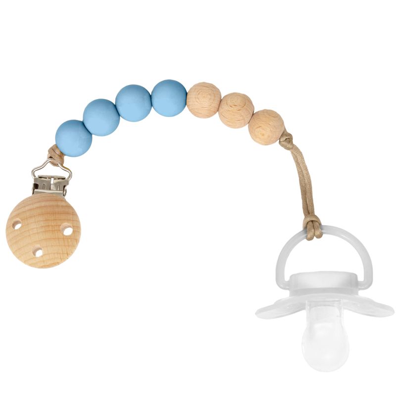 Beleza e SaúdeInfantil e GestanteInfantilPrendedor de Chupeta Buba Bolinhas em Silicone e Bambu Azul