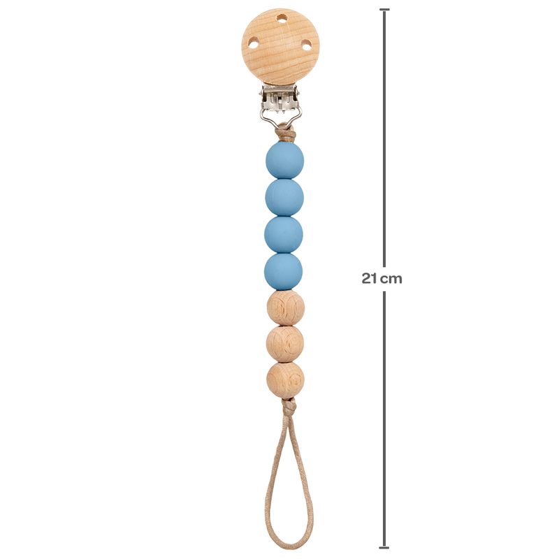 Prendedor de Chupeta Buba Bolinhas em Silicone e Bambu Azul REF: 7908103756455