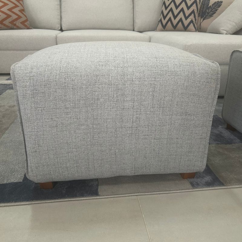 Puff Retangular Moderno em Tecido Linho Cinza Claro, Design Elegante, Base em Madeira, para Salas e Quartos REF: 929938_Sicredi