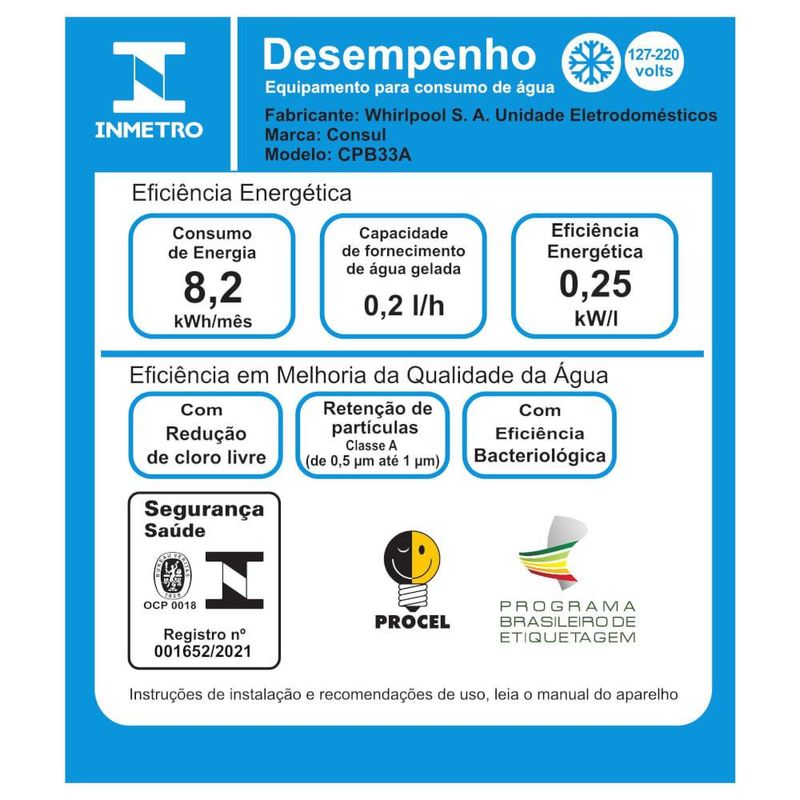 Purificador de Água Consul Eletrônico com Refrigeração Branco Bivolt CPB33AB REF: 561763_Sicredi
