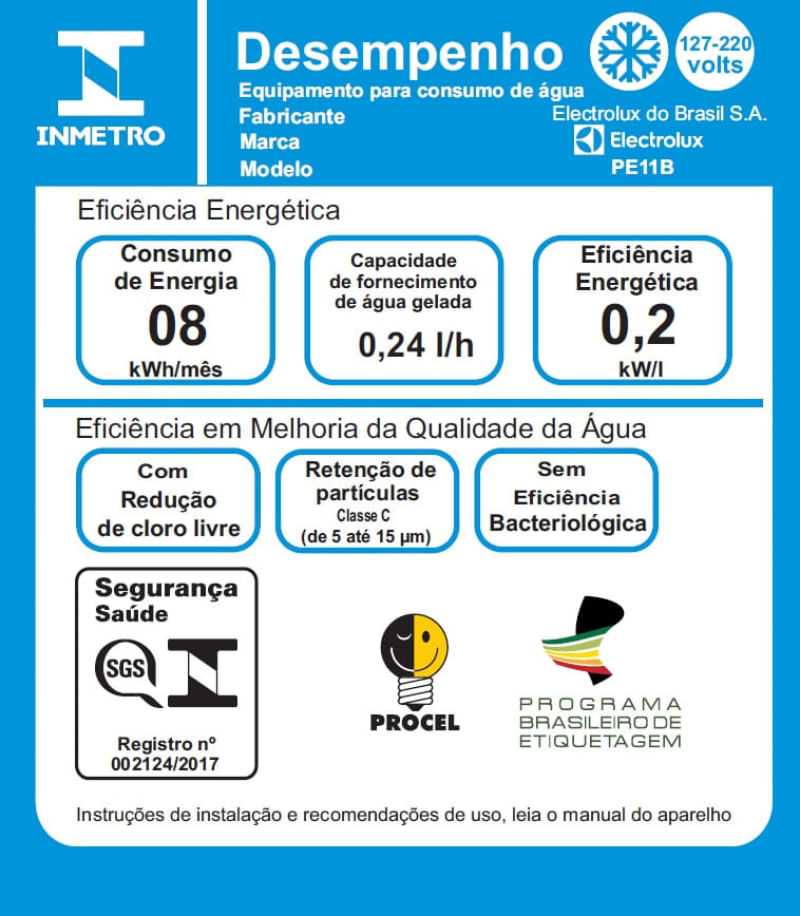 Purificador Electrolux Eletrônico Compacto Efficient Painel Digital Bivolt Branco (PE11B) REF: 659047_Sicredi