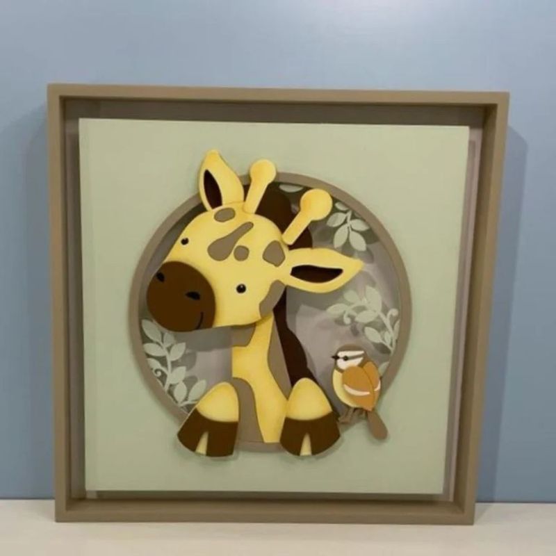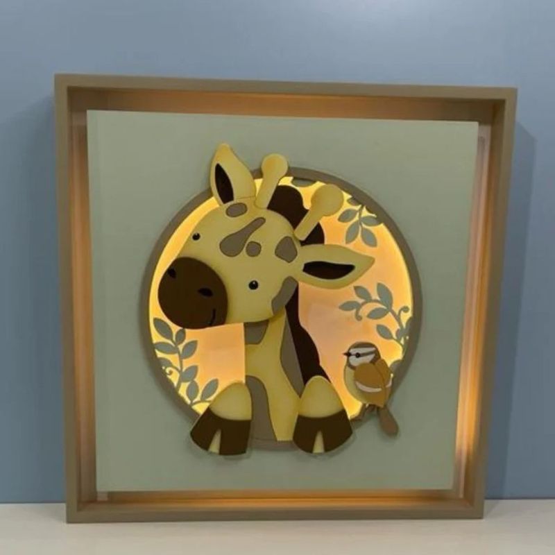 Casa e DecoraçãoDecoraçãoQuadros e PlacasQuadro Caixa Charme Safari Girafa em Relevo e Luz LED - BH Baby Kids