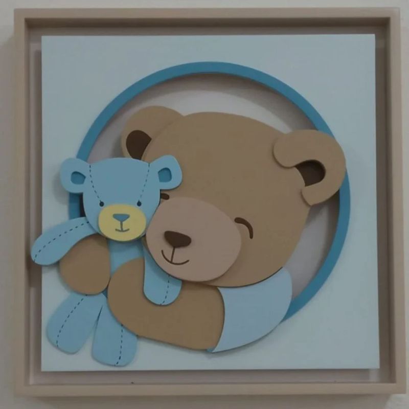 Quadro Caixa Charme Urso com Ursinho em Relevo e Luz de LED - BH Baby Kids REF: 921146_0_Sicredi