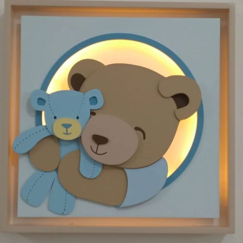 Casa e DecoraçãoDecoraçãoQuadros e PlacasQuadro Caixa Charme Urso com Ursinho em Relevo e Luz de LED - BH Baby Kids