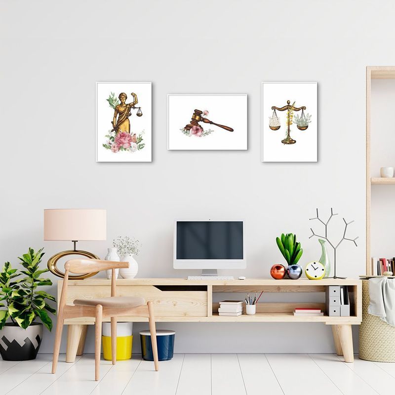 Quadro Deusa Martelo e Balança 244x86 3-86x60 Filete Branco REF: 430026_Sicredi