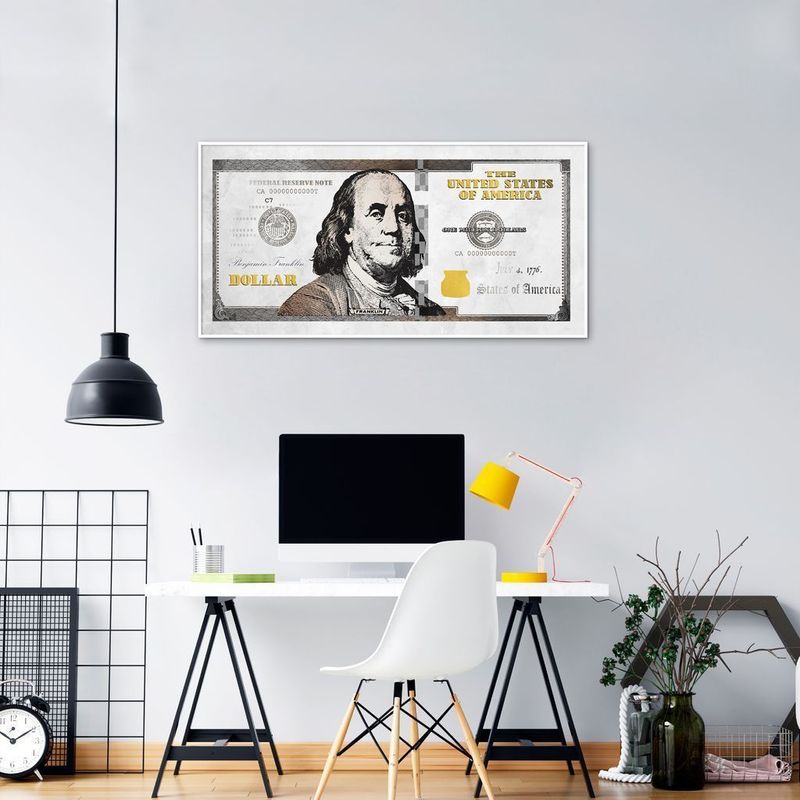 Quadro Dinheiro Nota Dólar 86x43 Filete Branco REF: 429050_Sicredi