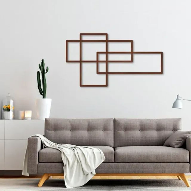 Quadro Escultura de Parede Retângulos Abstratos 80x44 Marrom REF: 581972_Sicredi