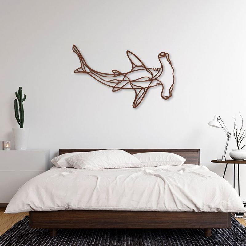 Casa e DecoraçãoDecoraçãoQuadros e PlacasQuadro Escultura Tubarão Martelo One Line 100x61 Marrom
