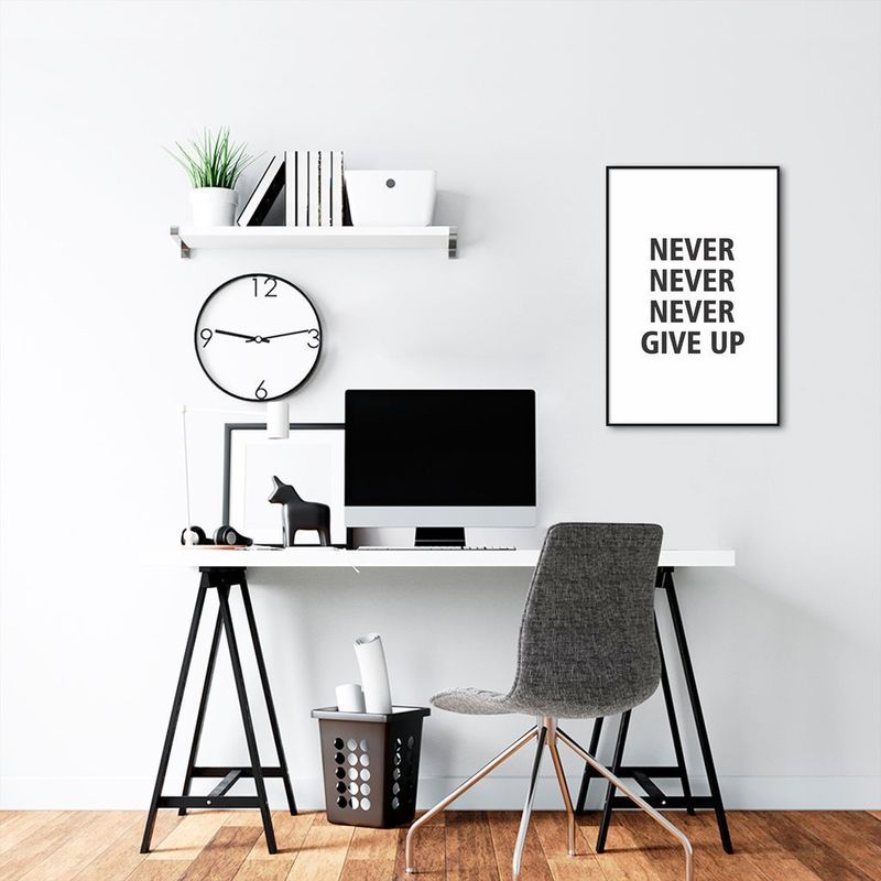 Quadro Frase Never Give Up 43x30 Filete Preto REF: 447474_Sicredi