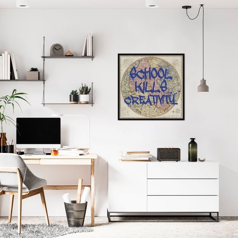 Quadro Frase School Kills Creativity 43x43 Caixa Preto REF: 447786_Sicredi
