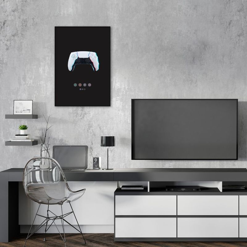 Quadro Gamer Glitch Controle PS Buttons 60x43 Filete Preto REF: 416061_Sicredi