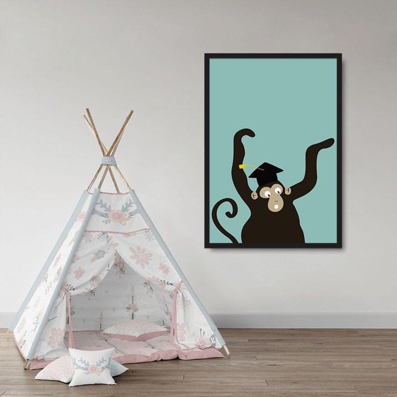 Casa e DecoraçãoDecoraçãoQuadros e PlacasQuadro Infantil Cartoon Macaco 43x30 Caixa Preto