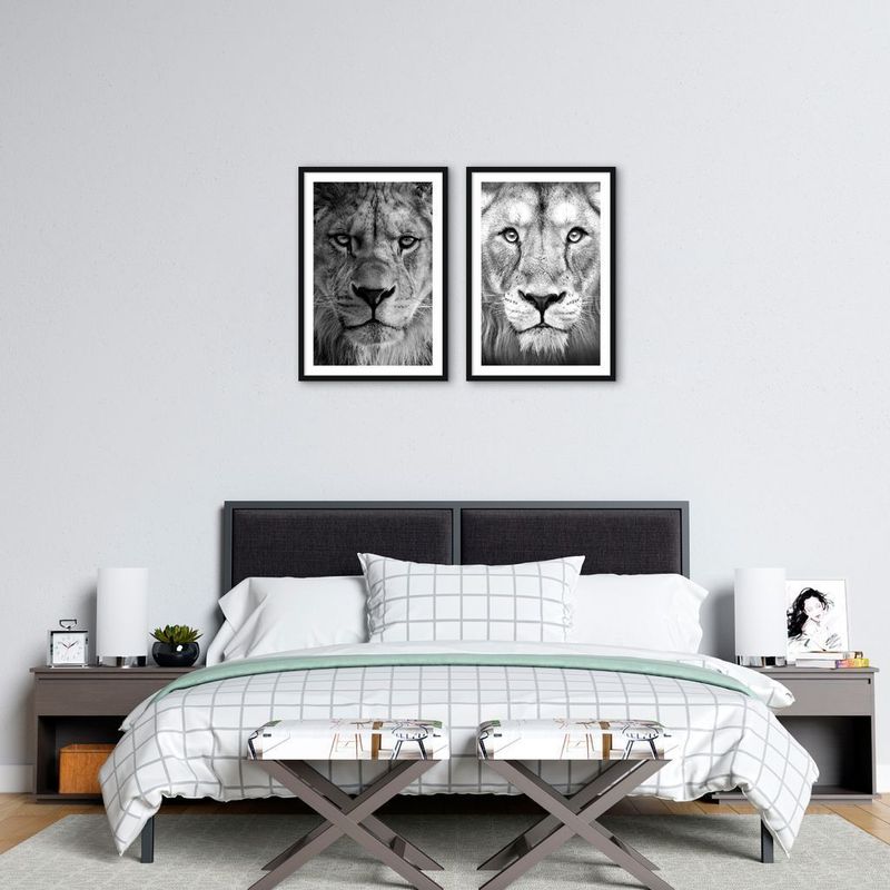 Quadro Leão e Leoa 88x60 2-60x43 Caixa Preto REF: 415075_Sicredi