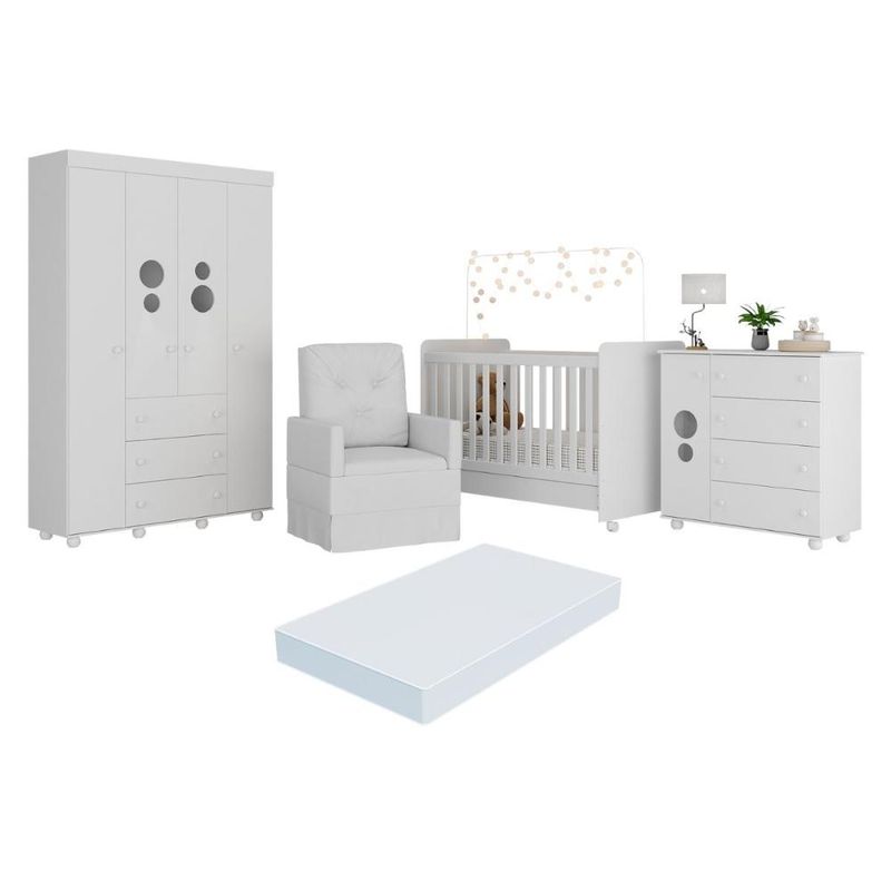 Casa e DecoraçãoMóveisQuarto completoQuarto Completo com Colchão e Poltrona de Amamentação Pimpolho Multimóveis MP4097