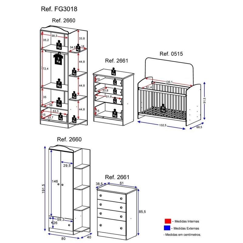 Casa e DecoraçãoMóveisQuarto completoQuarto Completo Guarda-Roupa/Cômoda/Berço Multimóveis João e Maria FG3018 Branco/Colorido