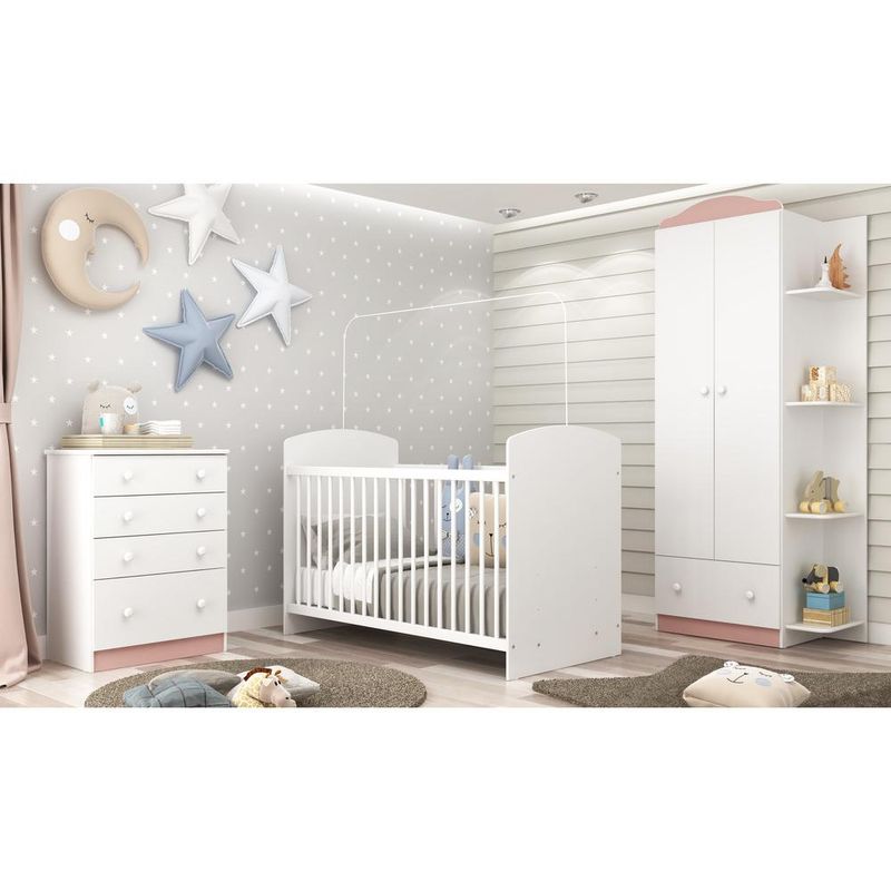 Quarto Completo Guarda-Roupa/Cômoda/Berço Multimóveis João e Maria FG3018 Branco/Colorido REF: 770346_Sicredi
