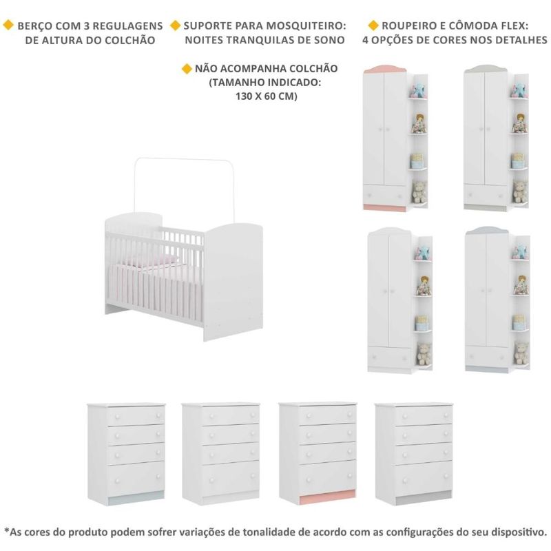 Quarto Completo João e Maria com guarda-roupa, cômoda e berço Multimóveis Branco/Colorido REF: 676298_Sicredi