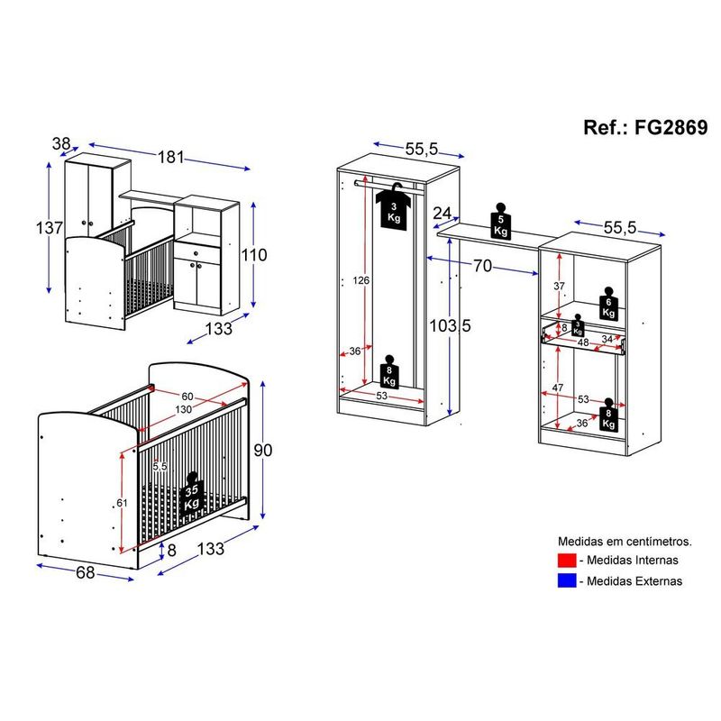 Casa e DecoraçãoMóveisQuarto completoQuarto de Bebê Completo Berço/Guarda-Roupa/Cômoda FG2869 Multimóveis Branco