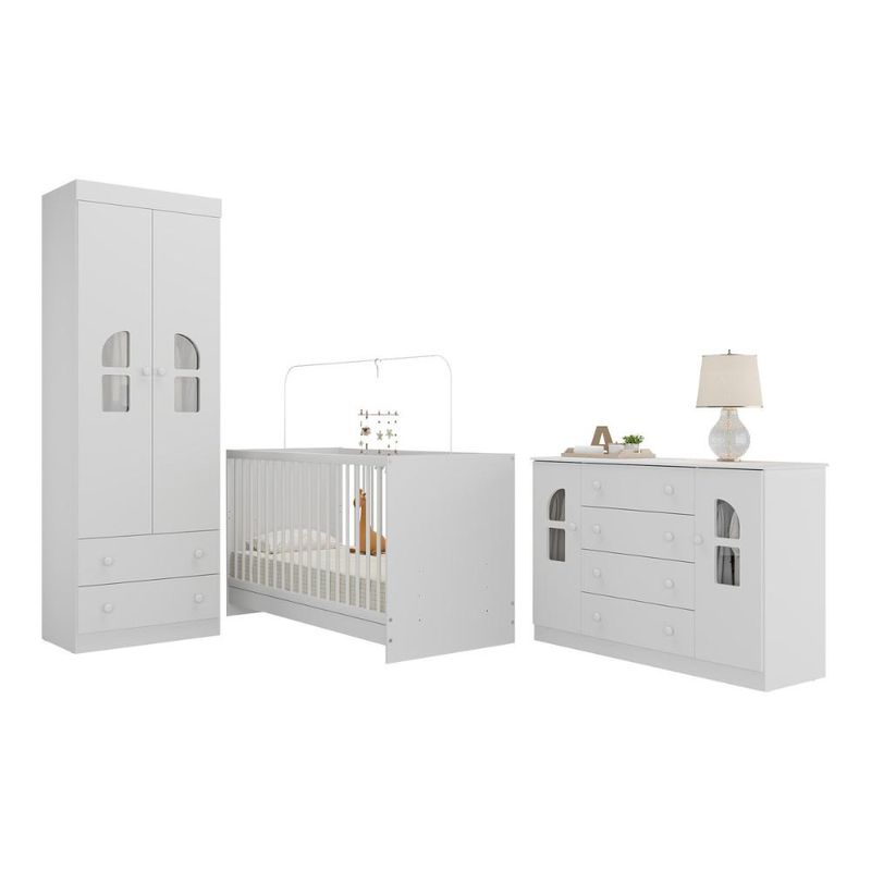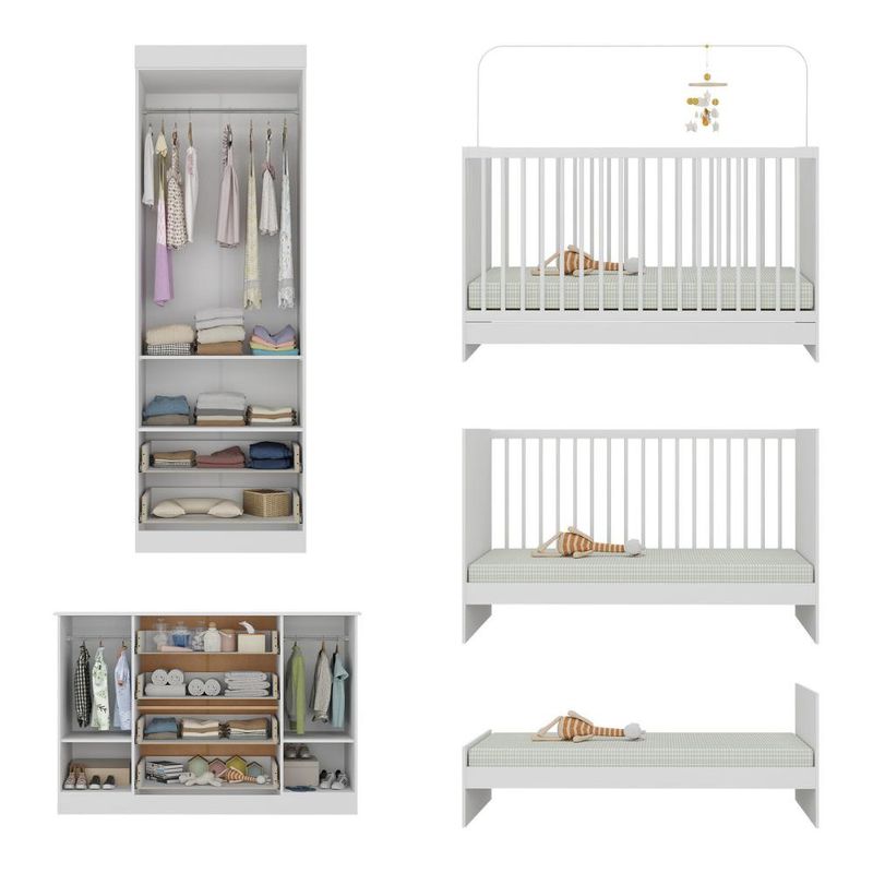 Casa e DecoraçãoMóveisQuarto completoQuarto de Bebê Completo com Berço 3 em 1 para Colchão 130x60cm Amora Multimóveis MP4561
