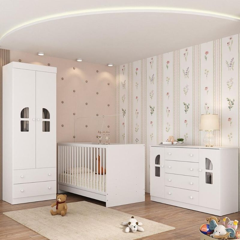 Quarto de Bebê Completo com Berço 3 em 1 para Colchão 130x60cm Amora Multimóveis MP4561 REF: 7899390831898
