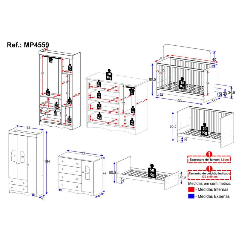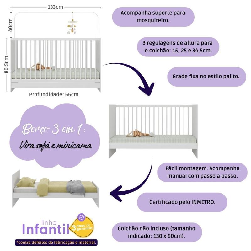 Quarto de Bebê Completo com Berço 3 em 1 para Colchão 130x60cm Liz Multimóveis MP4559 REF: 7899390831850