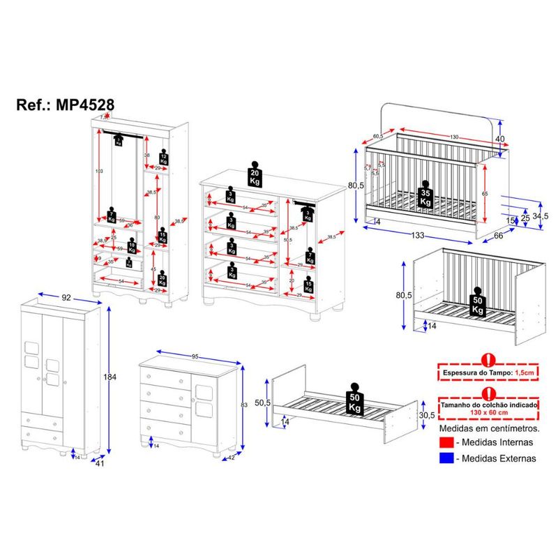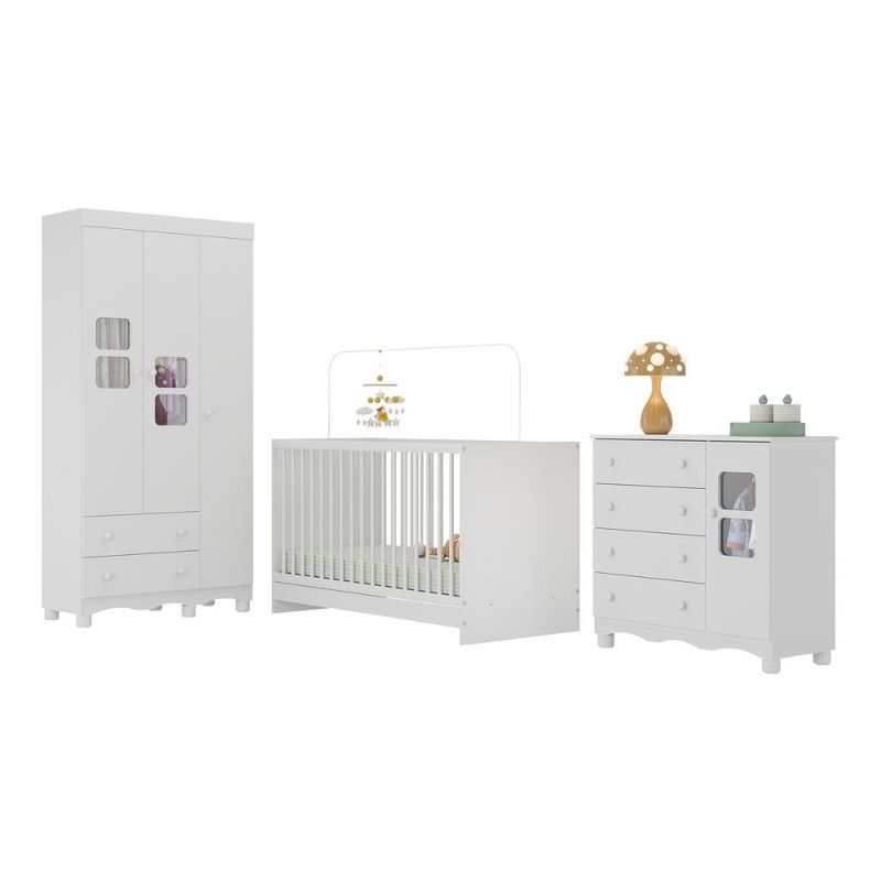 Casa e DecoraçãoMóveisQuarto completoQuarto de Bebê Completo com Berço 3 em 1 para Colchão 130x60cm Luna Multimóveis MP4528