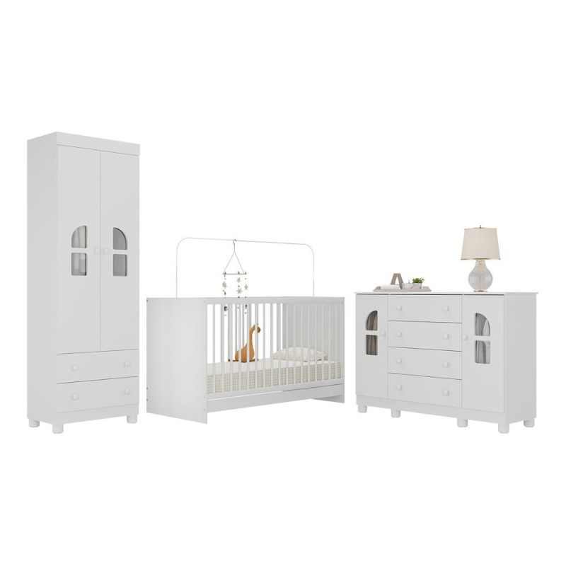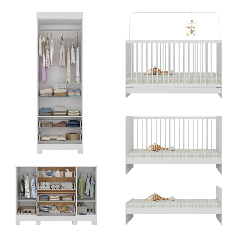 Quarto de Bebê Completo com Berço 3 em 1 para Colchão 130x60cm Nina Multimóveis MP4562 REF: 7899390831911