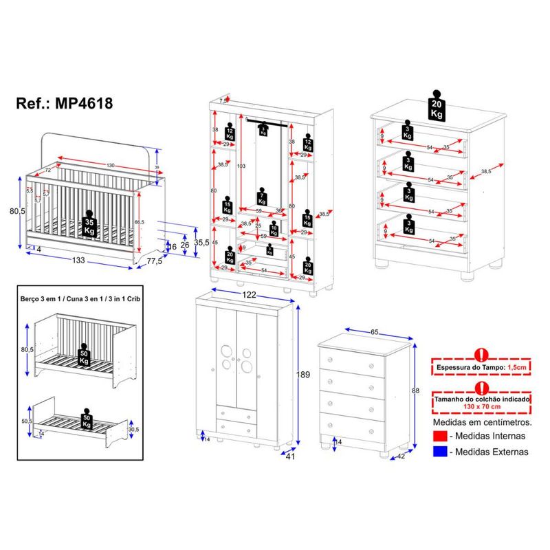 Casa e DecoraçãoMóveisQuarto completoQuarto de Bebê Completo com Berço Americano 3 em 1 Bombom Multimóveis MP4618