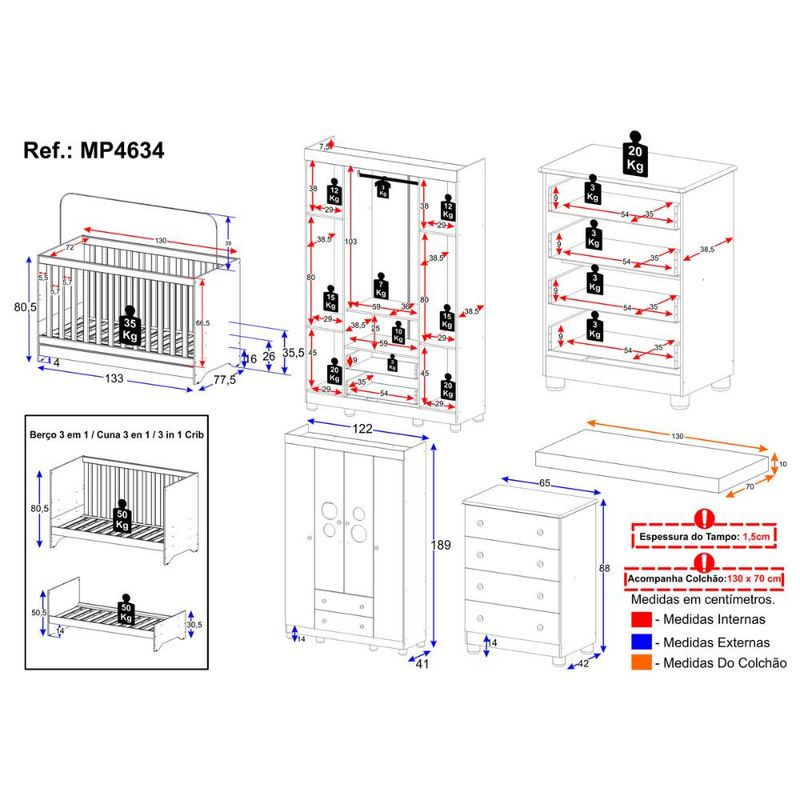 Casa e DecoraçãoMóveisQuarto completoQuarto de Bebê Completo com Berço Americano 3 em 1 Colchão Incluso Bombom Multimóveis MP4634