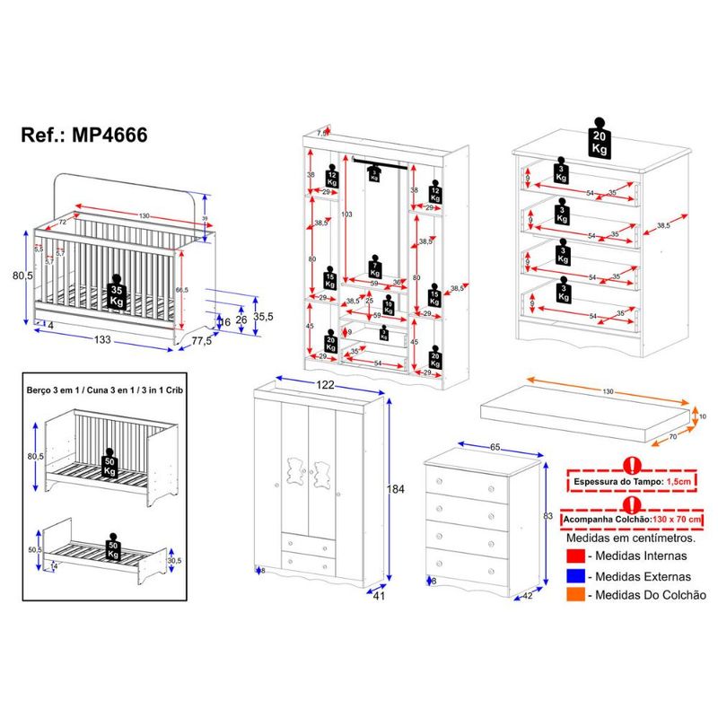 Casa e DecoraçãoMóveisQuarto completoQuarto de Bebê Completo com Berço Americano 3 em 1 Colchão Incluso Doçura Multimóveis MP4666