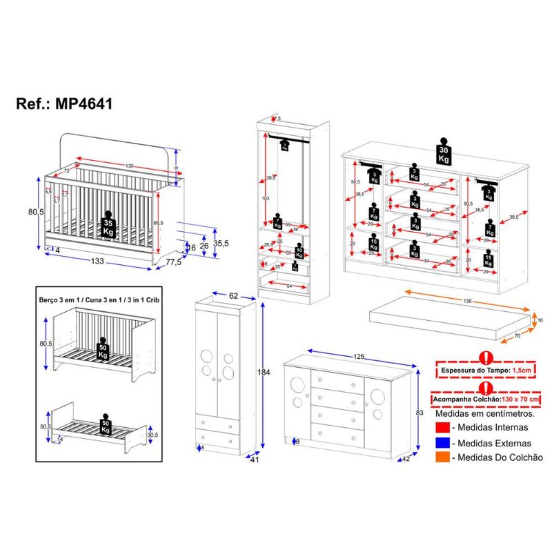 Casa e DecoraçãoMóveisQuarto completoQuarto de Bebê Completo com Berço Americano 3 em 1 Colchão Incluso Pirulito Multimóveis MP4641