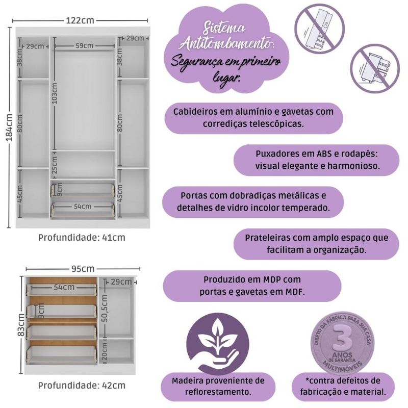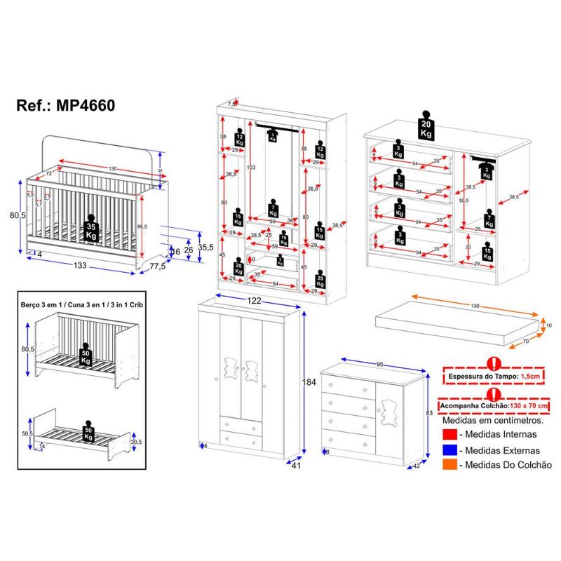 Casa e DecoraçãoMóveisQuarto completoQuarto de Bebê Completo com Berço Americano 3 em 1 Colchão Incluso Teddy Multimóveis MP4660