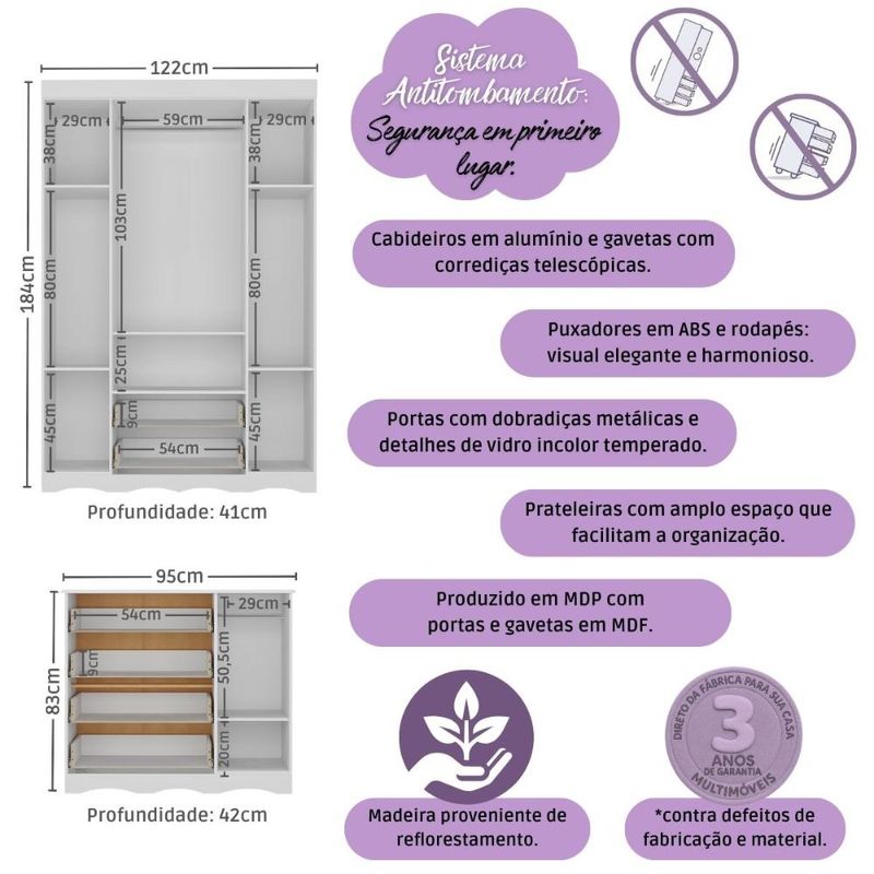 Casa e DecoraçãoMóveisQuarto completoQuarto de Bebê Completo com Berço Americano 3 em 1 Doçura Multimóveis MP4646