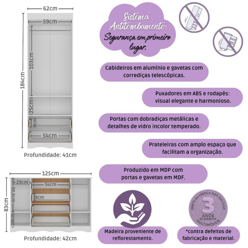 Casa e DecoraçãoMóveisQuarto completoQuarto de Bebê Completo com Berço Americano 3 em 1 Doçura Multimóveis MP4658