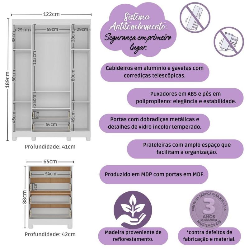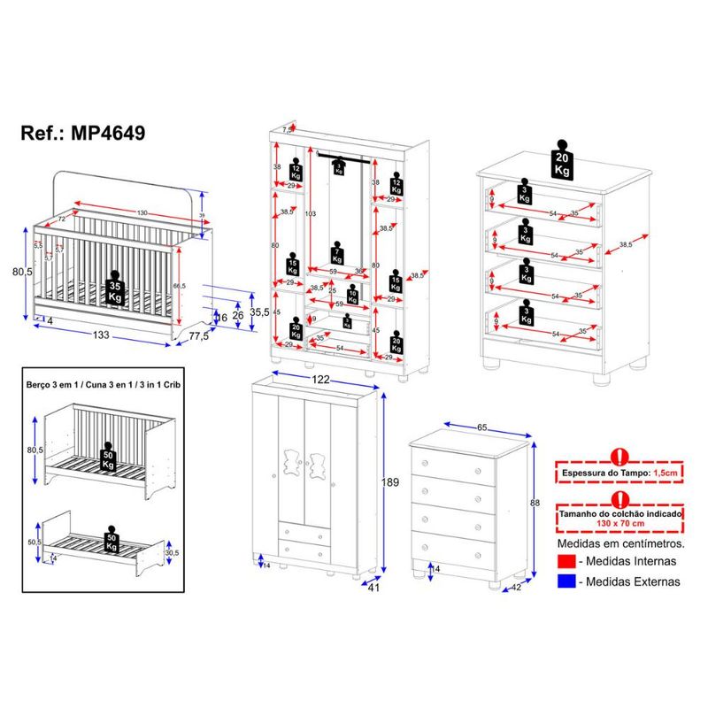 Casa e DecoraçãoMóveisQuarto completoQuarto de Bebê Completo com Berço Americano 3 em 1 Fofura Multimóveis MP4649