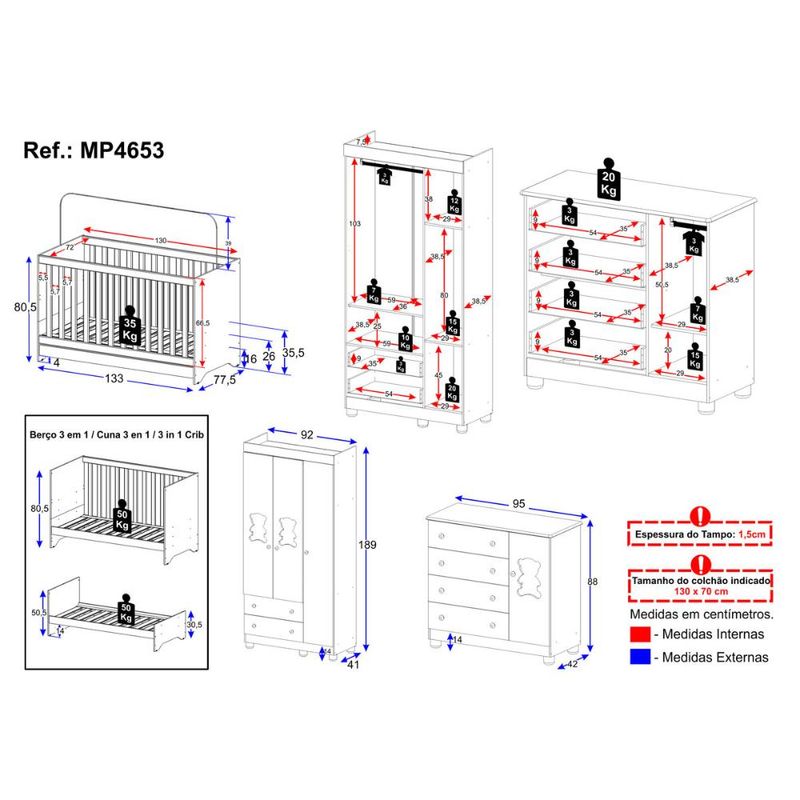 Casa e DecoraçãoMóveisQuarto completoQuarto de Bebê Completo com Berço Americano 3 em 1 Fofura Multimóveis MP4653
