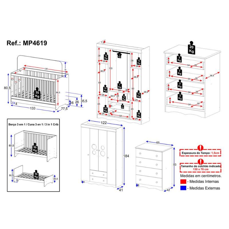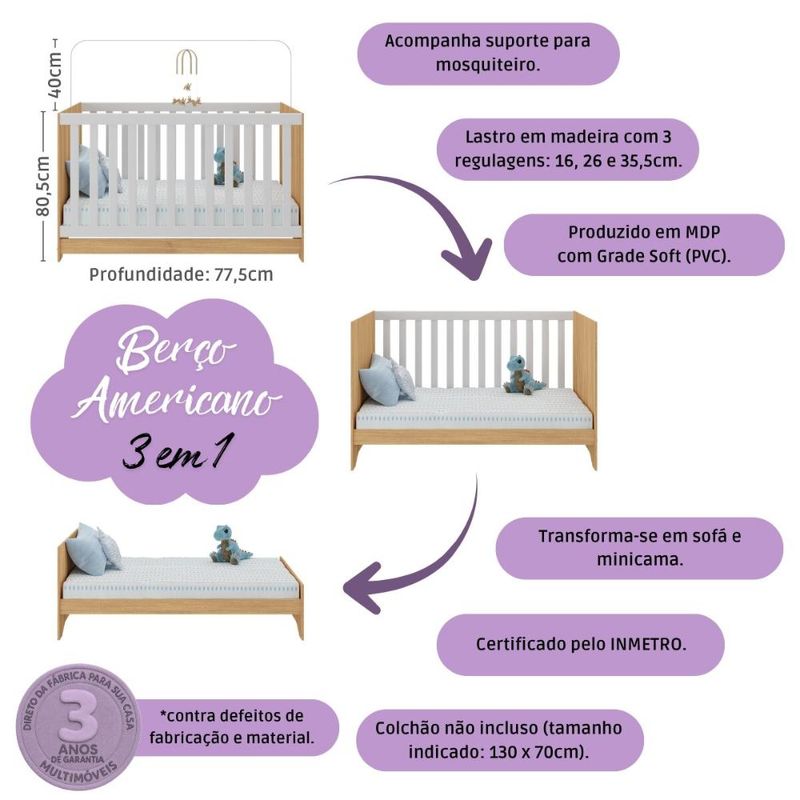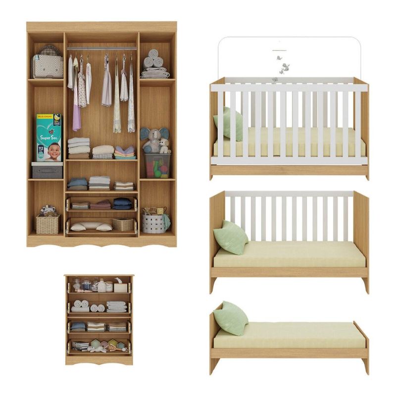 Casa e DecoraçãoMóveisQuarto completoQuarto de Bebê Completo com Berço Americano 3 em 1 Sonho Multimóveis MP4619