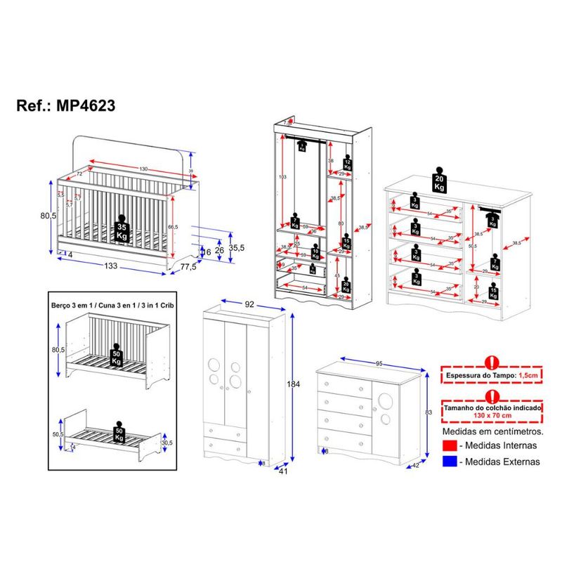 Casa e DecoraçãoMóveisQuarto completoQuarto de Bebê Completo com Berço Americano 3 em 1 Sonho Multimóveis MP4623